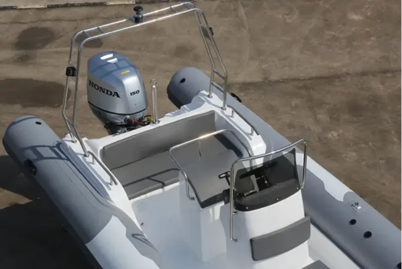 This 28ft sport rigid inflatable boat which length is 6.8M, could load in 4pcs in one 45HQ container. If want install maximum hp engine,please communication with our factory which is very important for boat.
